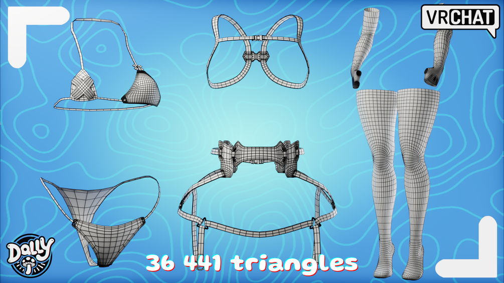 Bikini cyberpunk outfit made by me using Blender, Substance Painter and Photoshop. This was made for use in VRChat.
