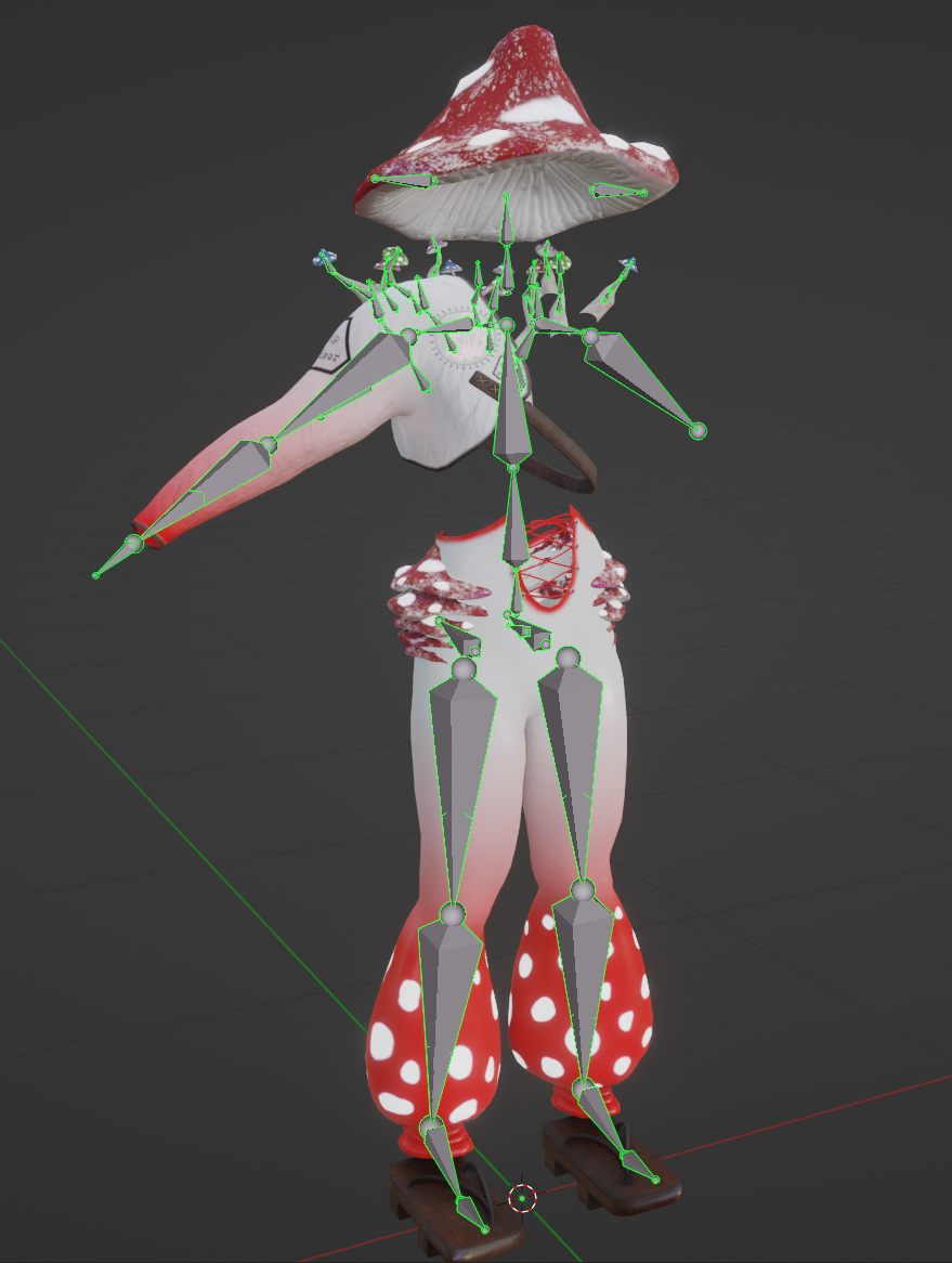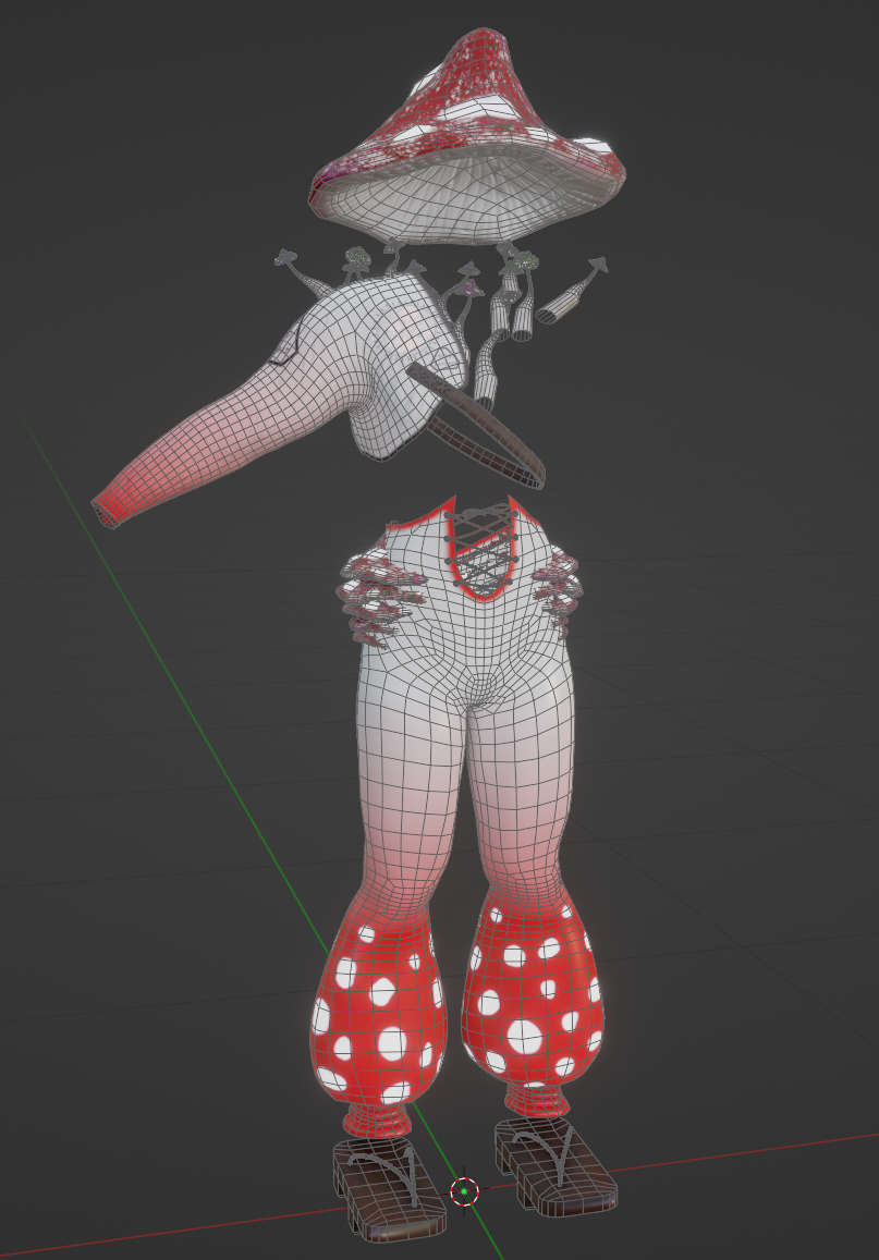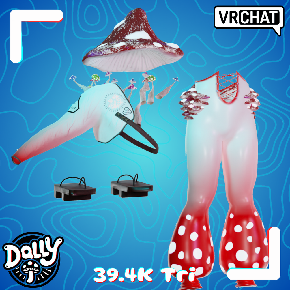 Mushroom man outfit made from scratch by me using Marverlous Designer, Blender, Substance Painter and Photoshop. This was made for use in VRChat.